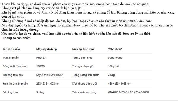Hướng dẫn sử dụng máy sấy quần áo gấp gọn PHDZ-25